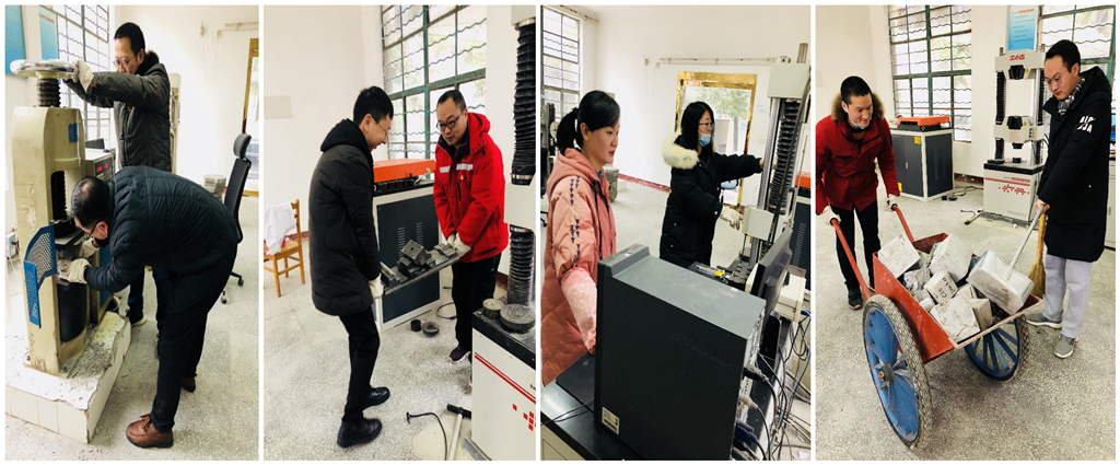 一進檢測室,支部書記曹亦斌和副經(jīng)理王曉冬就身先士卒,首先進行了混凝土試塊抗壓試驗的操作;在他們的帶動下賈鋒同志也不顧自身傷痛,和姜南同志一起搬起幾十斤重的混凝土抗折試件進行試驗;新進員工張雪婷同志,是公司引進的高學歷專業(yè)技術(shù)人才,她本著共產(chǎn)黨員扎實肯干的精神,主動要求和喻麗燕同志一起承擔鋼筋力學性能拉伸試驗;陳翔同志利用扶貧工作之余,積極參與黨建示范項目,和高斌同志一起搶著清理大家實操后留下的各種原材料和建筑垃圾。