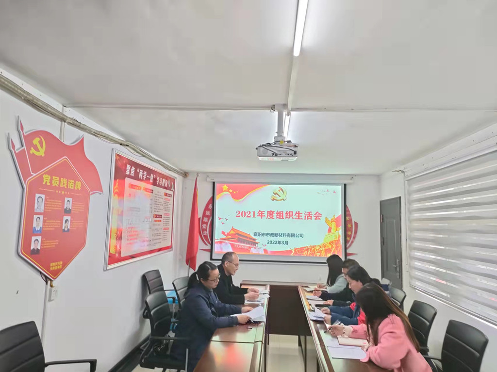 根據(jù)市委組織部印發(fā)的《關于召開2021年度全市基層黨組織組織生活會和開展民主評議黨員工作的通知》文件精神, 3月17日下午,新材料有限公司黨支部組織召開2021年度組織生活會,并開展黨員民主評議。會議由黨支部書記孔慶銳同志主持,集團黨委委員、副總經(jīng)理陳紅英到會指導。
