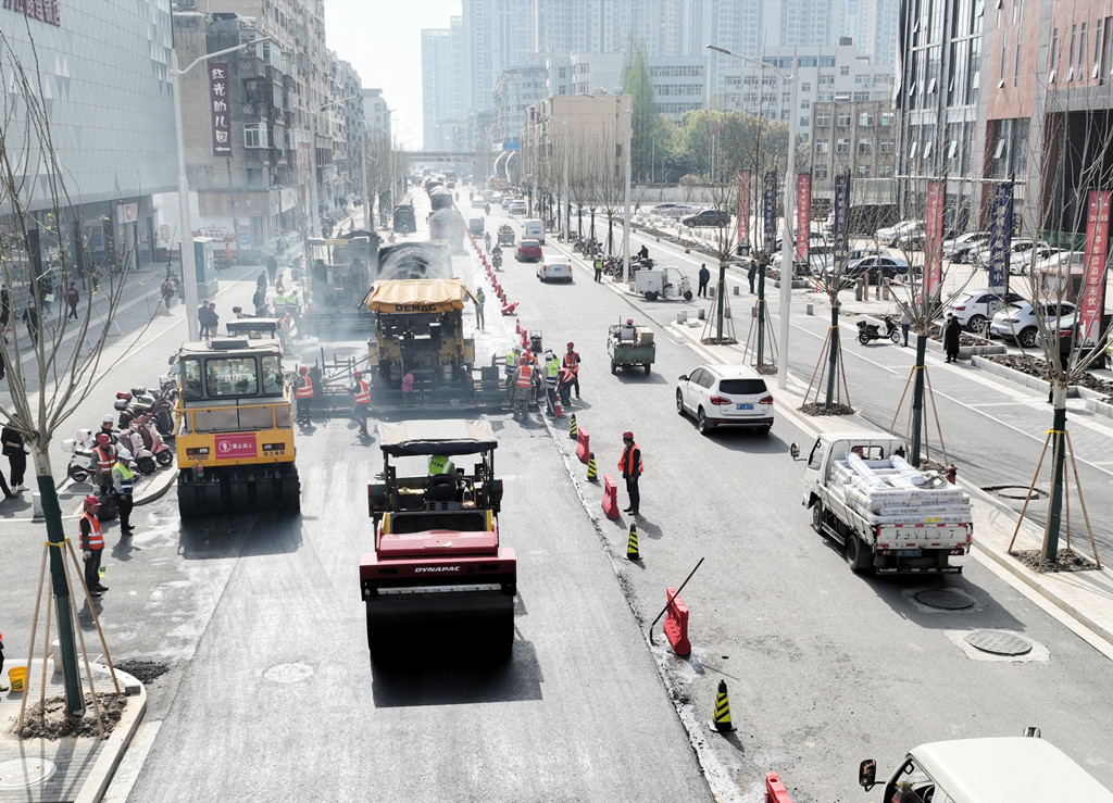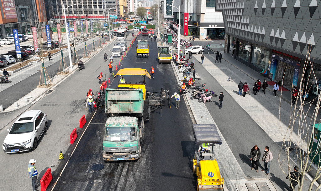 3月29日,在樊城丹江路,漢江城建第三分公司開始攤鋪路面瀝青,為方便市民出行,該路段實(shí)行半幅施工,刷黑改造工程將在3天內(nèi)完成,這標(biāo)志著丹江路改造即將全面完工。
