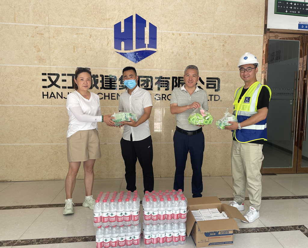 近日持續(xù)高溫天氣,市政工程公司為推進(jìn)“下基層、察民情、解民憂、暖民心”實(shí)踐活動(dòng),保障施工一線人員的安全健康,有效地促進(jìn)安全生產(chǎn)經(jīng)營(yíng),及時(shí)采取高溫天氣應(yīng)對(duì)措施,認(rèn)真做好職工防暑降溫工作。6月18日,經(jīng)理來(lái)向東、支部書(shū)記程健帶領(lǐng)慰問(wèn)組分赴各在建項(xiàng)目現(xiàn)場(chǎng),慰問(wèn)在高溫酷暑下仍?shī)^戰(zhàn)一線的施工人員,并親自為他們送上礦泉水、風(fēng)油精、防暑降溫藥品等物資,把組織對(duì)員工的關(guān)懷送到心坎上,在炎炎夏日中為大家送上一份清涼和暖心,感謝他們?yōu)楣景l(fā)展所做出的奉獻(xiàn)。
